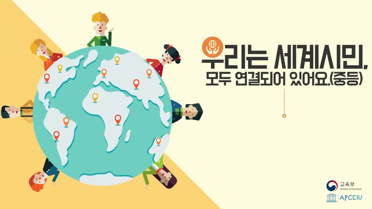 | 초등 | 1 | 우리는 세계시민, 모두 연결되어 있어요. | 중등 | 1 | 세계 속의 나, 나는 세계시민 |